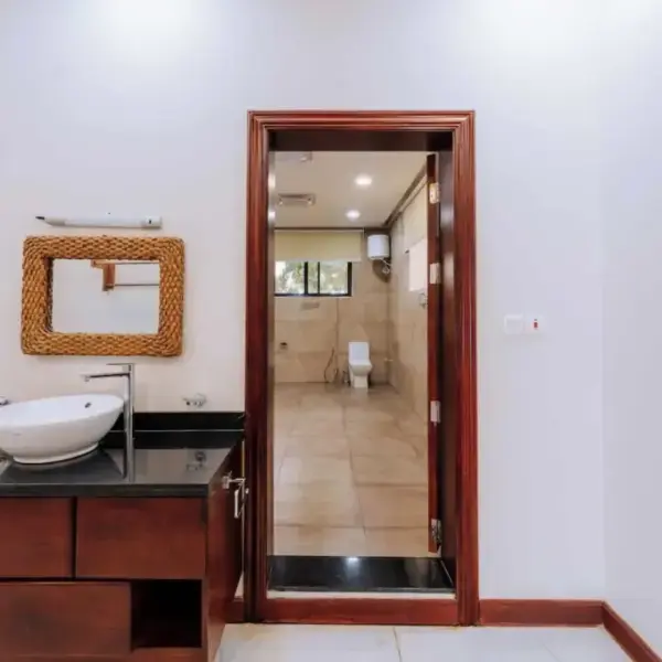 Relaxing Outdoor Spaces: Take a dip in the sparkling swimming pool or unwind in the lush garden with serene surroundings.